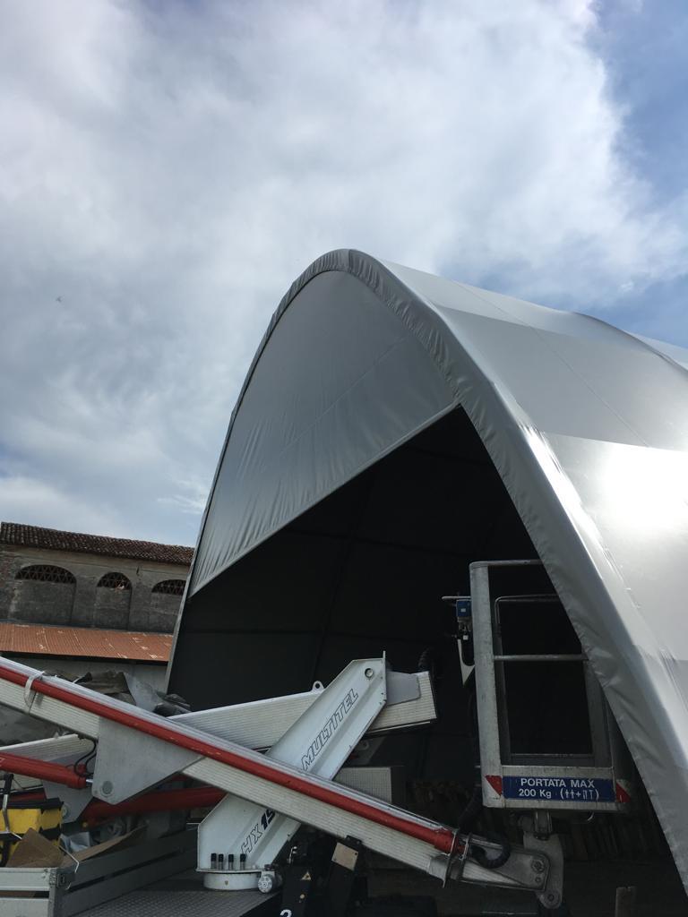Tendenzialmente il cliente ci richiede tunnel agricoli che sono strutture ad arco progettate per riparare qualsiasi cosa (trattori, rotoballe di fieno, attrezzi agricoli, ma anche merce come verdura e frutta raccolta).